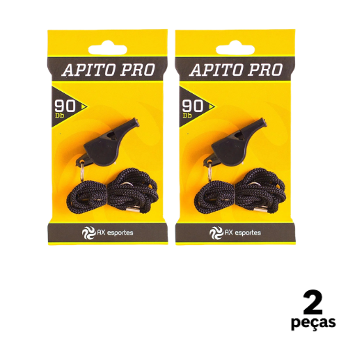 Similar ao Apito Brilhante Profissional, o apito AX Profissional possui 2 orifícios e vem com cordão para pendurar no pescoço.
