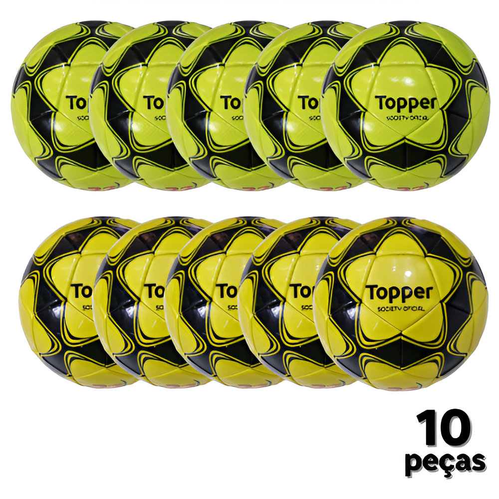 KIT 10 UNIDADES - Bola Futebol SOCIETY Topper SLICK 22 Com Costura Amarela - PACK COM 10