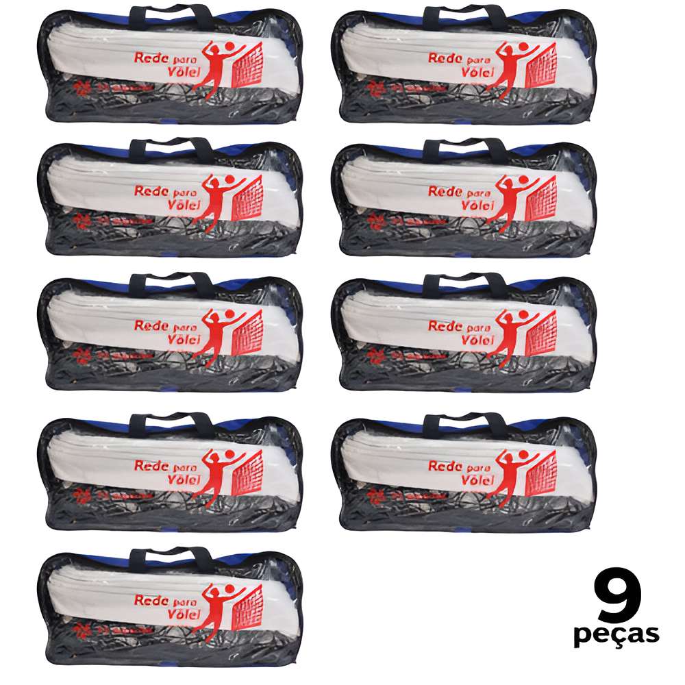 Rede de Vôlei Fio 2,5mm com Lona, Cabo de Aço e Bolsa – AX Esportes - PACK COM 9 UNIDADES